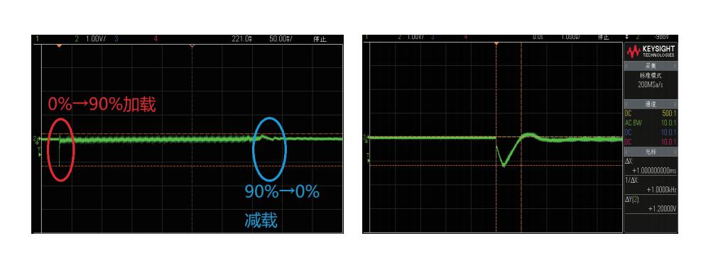 采用多环路复合控制技术,可编程直流测试电源MP系列提供了快速的动态响应能力,瞬间加载电压跌落<1%,减载几乎没有电压过冲,动态响应时间吗<2ms。