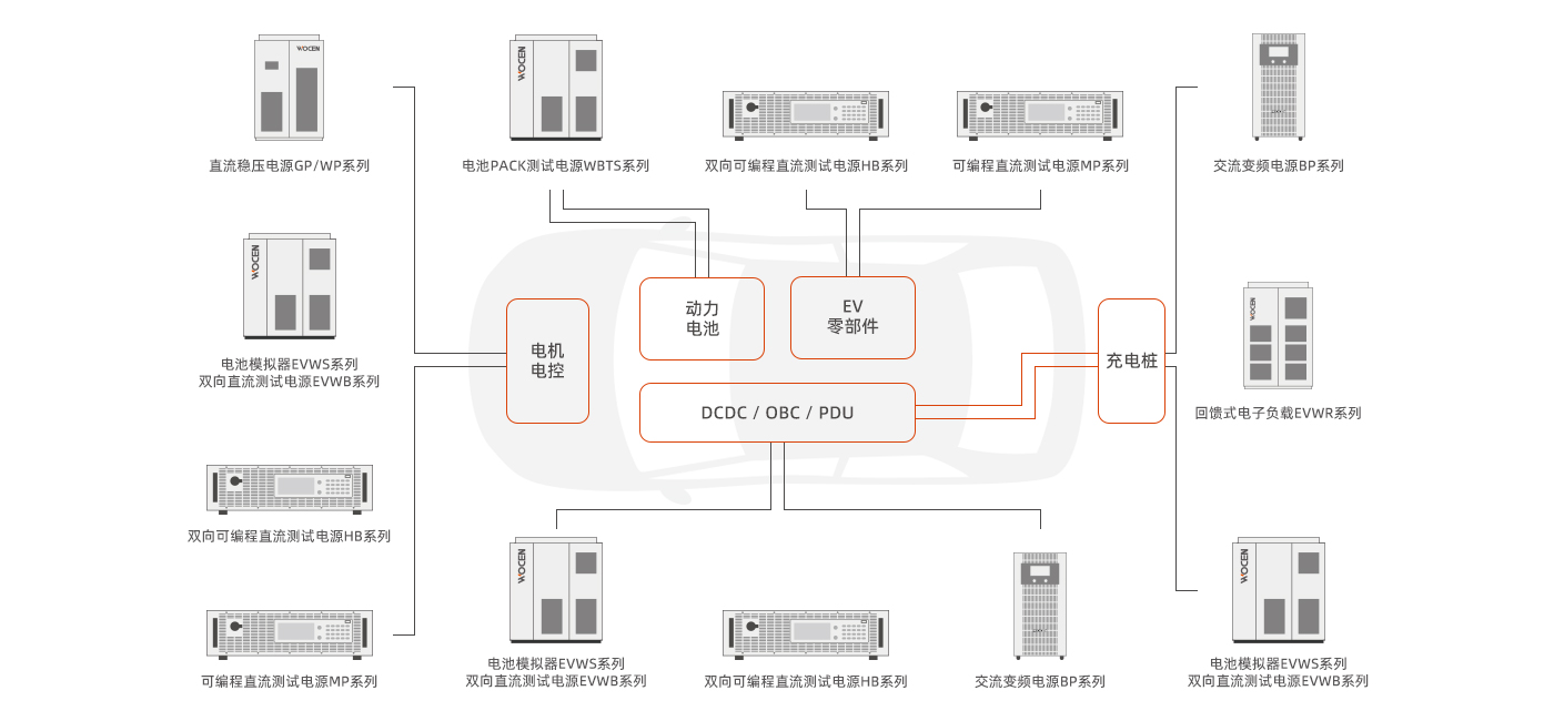 新能源汽车高速发展的同时,离不开与之配套的基础设施的建设。VSPORTS胜利因您更精彩电源为您提供的新能源汽车测试解决方案满足三电测试(电池、电机、电控)、交/直流充电桩测试、车载充电机及充电接口测试、便携式交流充电装置测试、交/直流充充电桩模拟测试、高压零部件测试等。